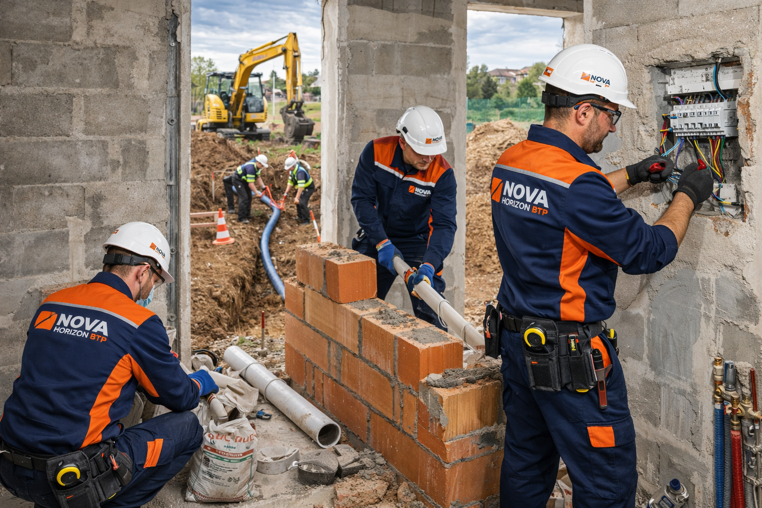 Nova Horizon BTP assure la réalisation et la rénovation des réseaux de plomberie et équipements sanitaires.